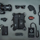 Highest quality materials and hardware, combine with excellent design and workmanship to produce the finest, precision equipment holster of its kind. It far exceeds the standards you are used to for this type of product. It is used by professional guides, military, pilots, independent travelers, snowboarders needing to tune up equipment on the slope, and countless other users looking for the best system to carry frequently used personal equipment. Also functions as a last-ditch, always-close survival kit.