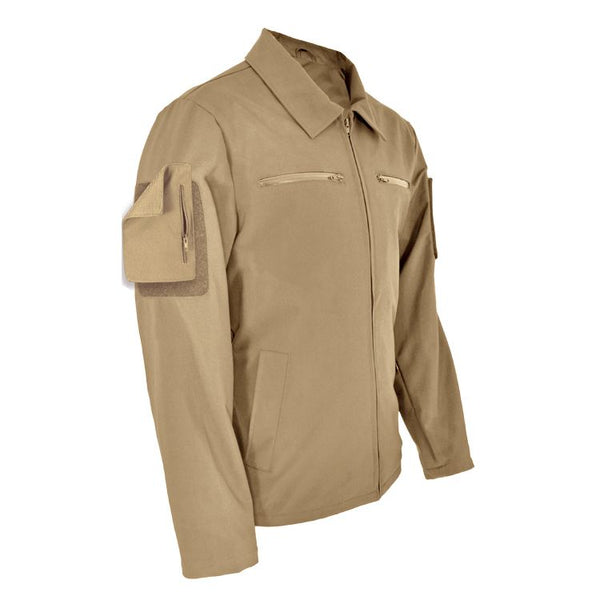 The addition of the softshell jacket was a major innovation in multi-weather outerwear. It allows use in both dry and wet conditions and in warmer and colder weather, since it sheds water while allowing breathability. But most available softshells come with an insulating layer of fleece bonded to the interior and just about all of them come only in an outdoor/sport cut. Our new offering is an urban style for everyday use, and has no insulation so it is more suited to warmer weather use, while still allowing layering for winter/fall. It is also lined with a brand new stretch breathable liner, so it is silky smooth to put on without typical grabby fleece or clammy nylon liners. This jacket also offers many unique organizational and tactical-specific features found only here.