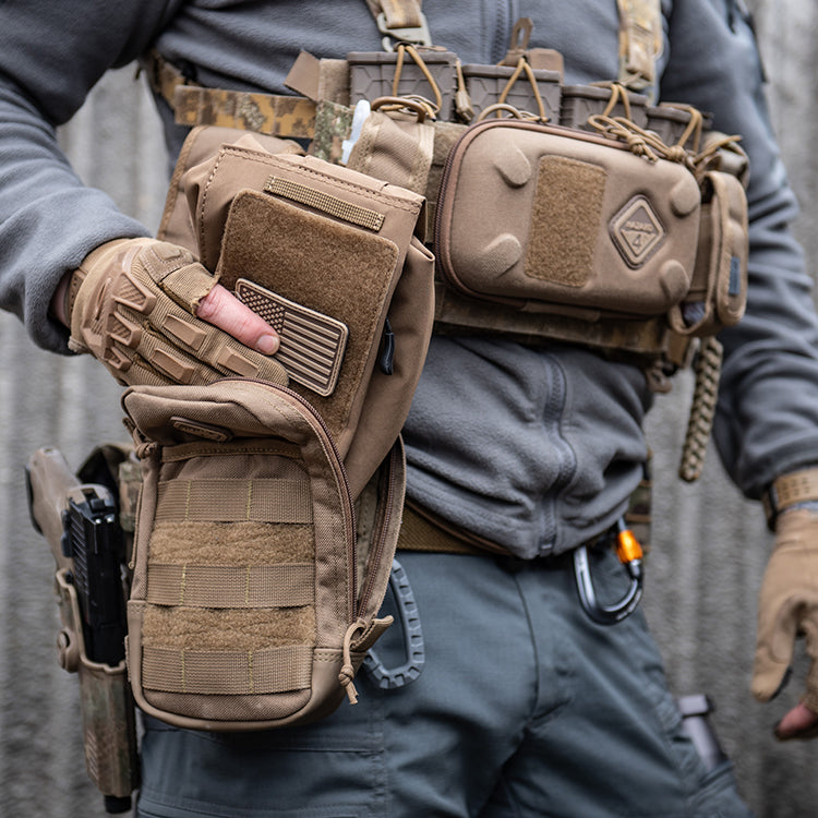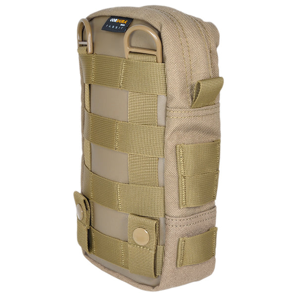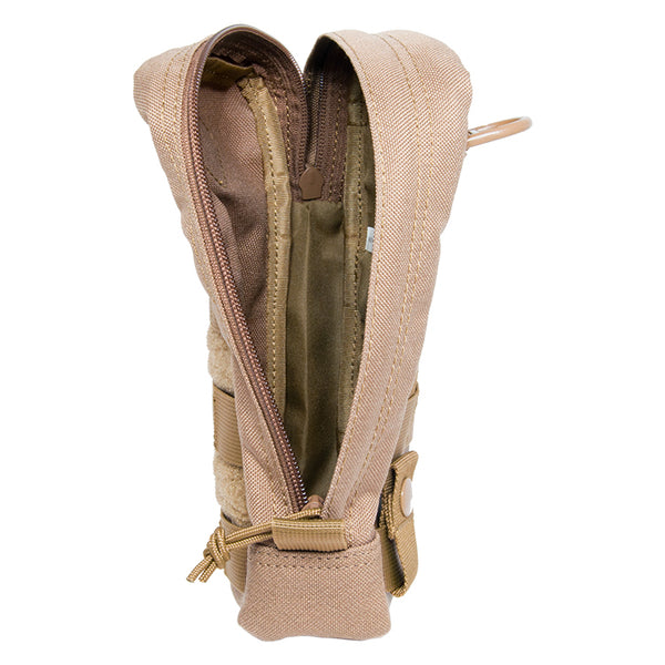 Use this medium-sized MOLLE compatible pouch to expand the carrying capacity of our larger packs and bags. Its zippered top holds contents securely while a front hook and loop-closed flat-pocket is provided for quick-grab items. Front MOLLE and fuzzy loop area allow further customization of the pouch itself.