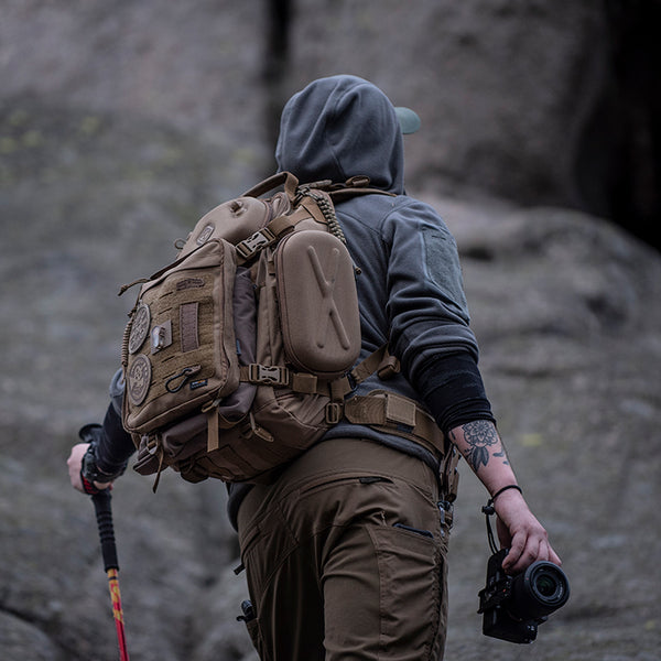 Carry your vulnerable camera and similarly sized devices into harsh environments with confidence on any modular-webbing vest, bags, etc.