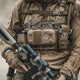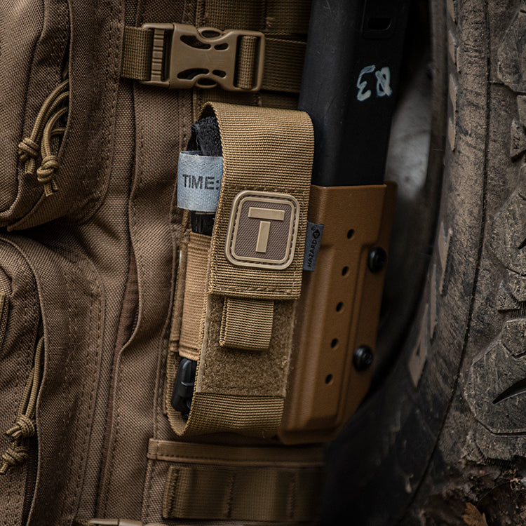 Takes a large tourni like the CAT, as well as holds firmly any of the smaller tourniquets like a SOFTT or others. Less bulk and material used in this than the NAR. The rubberized "T" catches the eye both in the prominence of the letter as well as the sheen of the rubber. When I have a large kit, like a mass-casualty kit, all opened up, or a bag that is molle city, with accessories attached all over it, that "T" is easy to see and go to without looking for it. If there is one piece of kit that you want to be able to get to fast after everyone has decided who is going to get shot and who is not, this is the one.