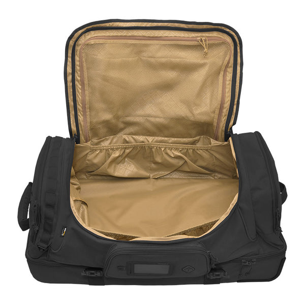 This luggage size is likely the biggest that most users can comfortably roll/carry singlehanded. It is very rugged in upper construction and wheels/chasis build. That makes it suited to long trips/deployments into locales with roads/sidewalks, etc. It is just as easy rolling along a bombed out runway as over the cobblestone streets of Europe.