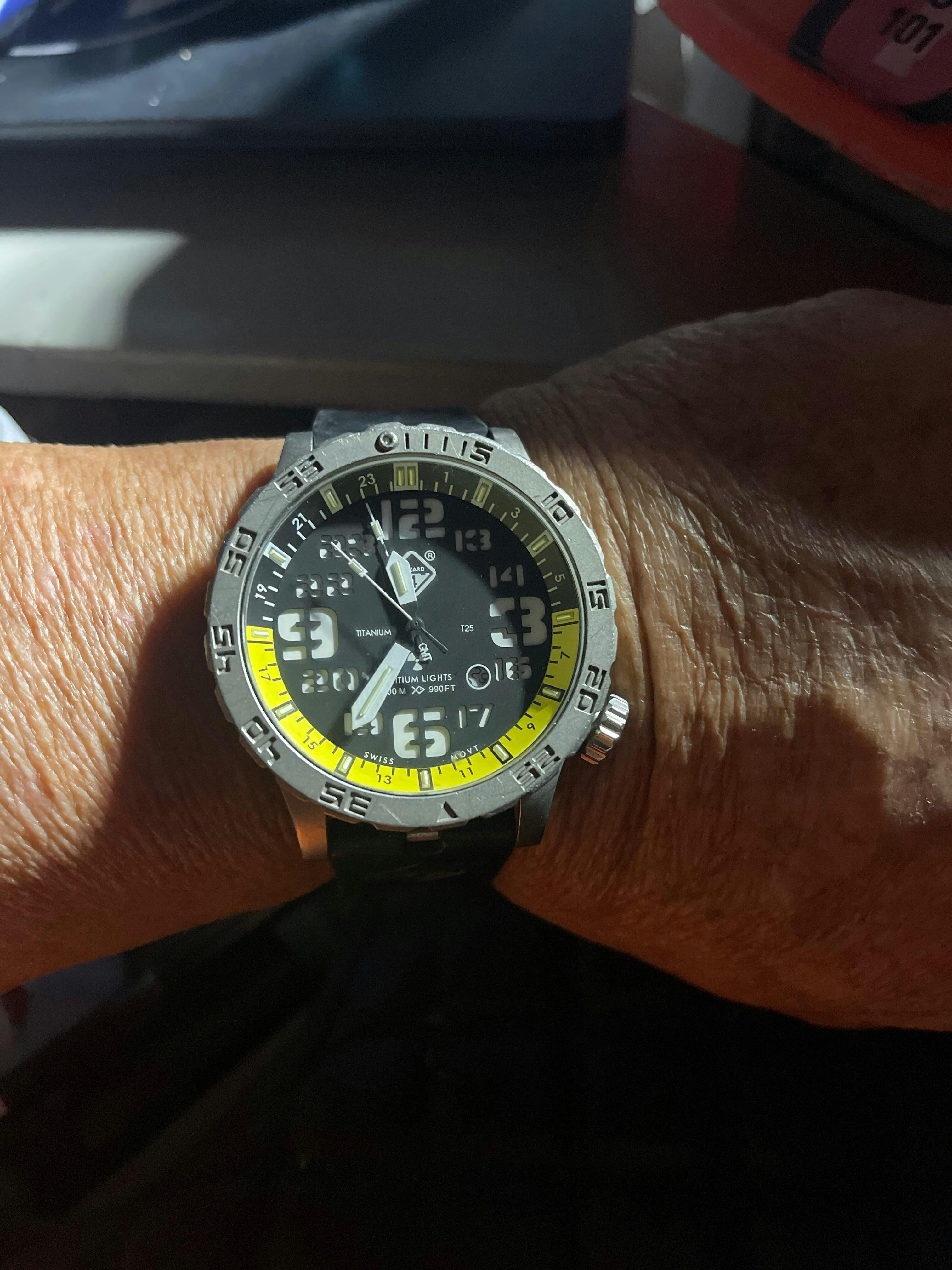 i love this watch markers and hands glow all nite ihave to get use to the weight its lighter than any of my other watches but all in all this watch is GREAT!!!!!!!!